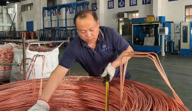 ▲胡次延正在整理铜丝