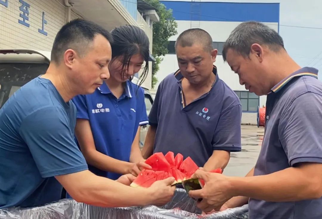 快盈vll 面对高温天气,湘联电缆领导高度重视员工生命安全,并采取多项措施帮助员工应对高温生产工作,如配备防暑降温的藿香正气水、凉茶等物品,同时坚持开展夏日送西瓜的员工福利活动,预防高温中暑。