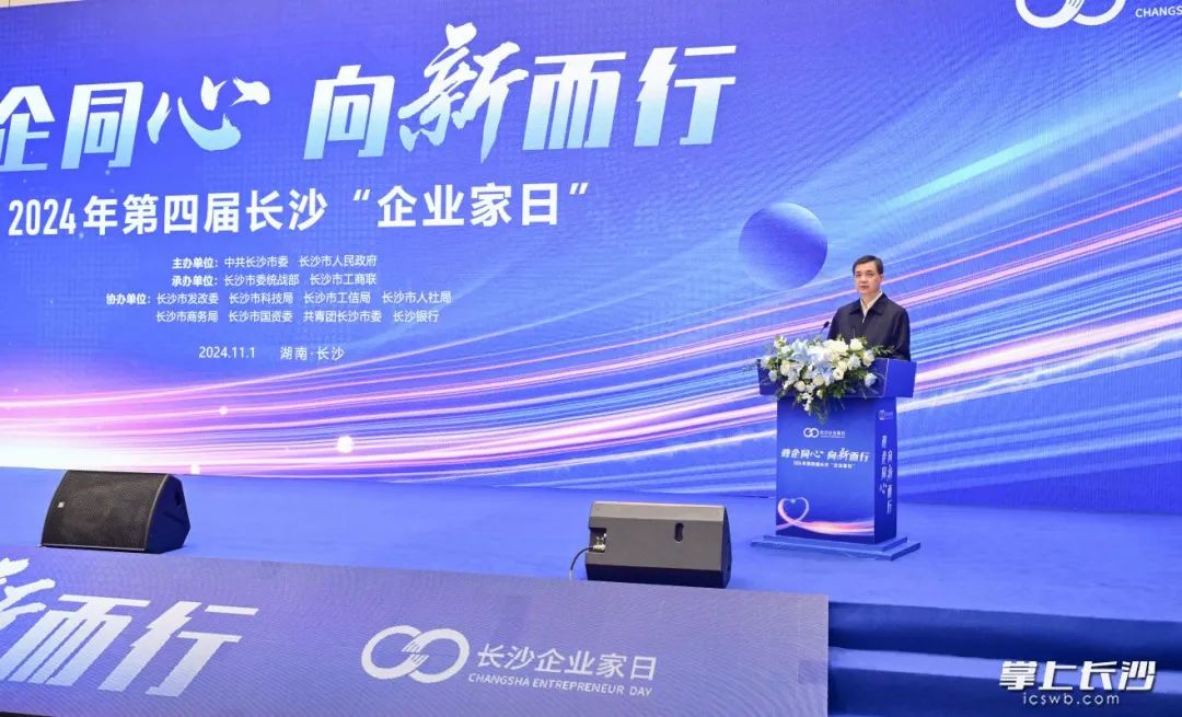 快盈vll ▲周海兵出席2024年第四届长沙“企业家日”活动并讲话
