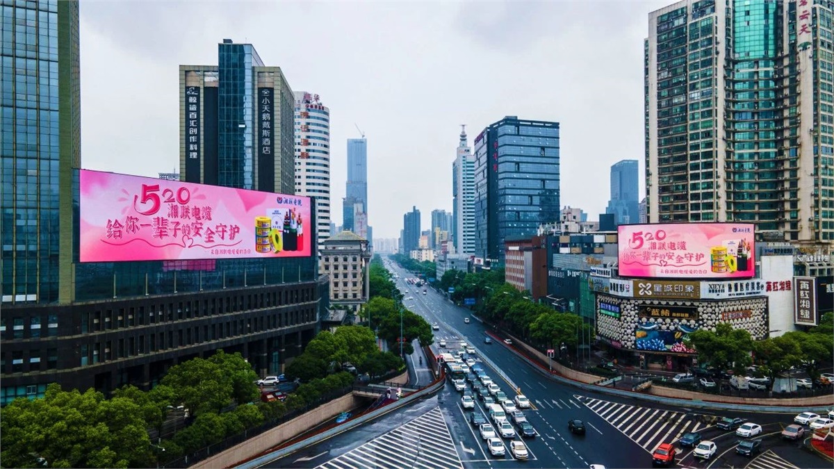 5月20日,湘联电缆联动长沙多块大屏,全城告白,向每一位用户传递温暖守护的决心。粉色系的画面,搭配安全感满满的文案。湘联电缆将守护的心意,藏进星城的大街小巷,为每一位关注、选择、信任湘联电缆的用户送上一份惊喜告白。