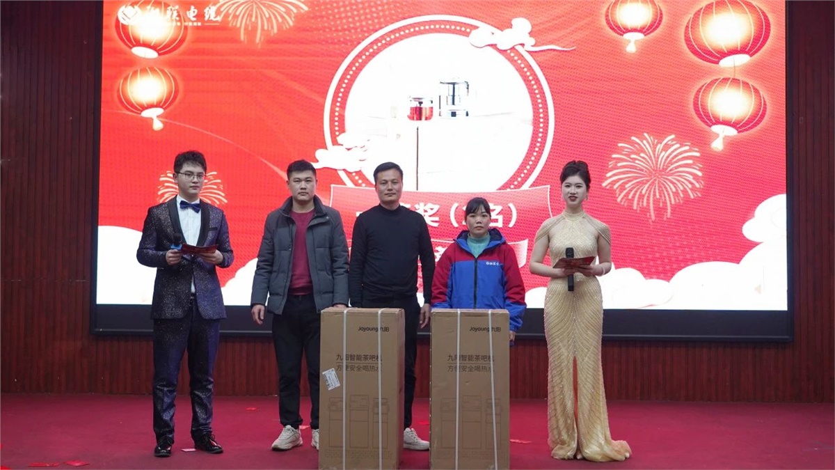 而在晚会的抽奖互动环节,更是惊喜连连,高潮迭起。实用丰厚的奖品引得大家欢呼声、尖叫声交织回荡,现场沉浸在一片欢乐的海洋之中。这不仅为员工们带来了物质上的惊喜与愉悦,更在互动中拉近了彼此距离,进一步增强了团队的凝聚力与员工的归属感。