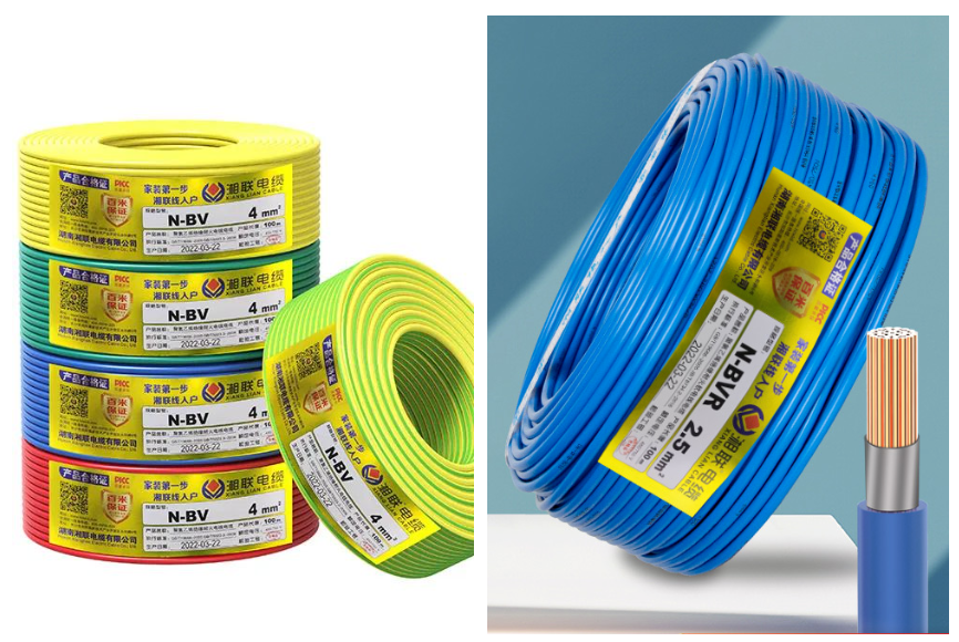 湘联电缆N-BV线(铜芯聚氯乙烯绝缘耐火电线)和N-BVR线(铜芯聚氯乙烯绝缘耐火软线),在聚氯乙烯绝缘层和铜线之间增加了一层云母带,云母带是一种耐火绝缘材料,具有优良的耐高温性能和耐燃烧性能。即使塑料外皮被烧坏,还有耐火层,也不会引起短路。在遇明火燃烧时基本不存在有害烟雾的挥发。