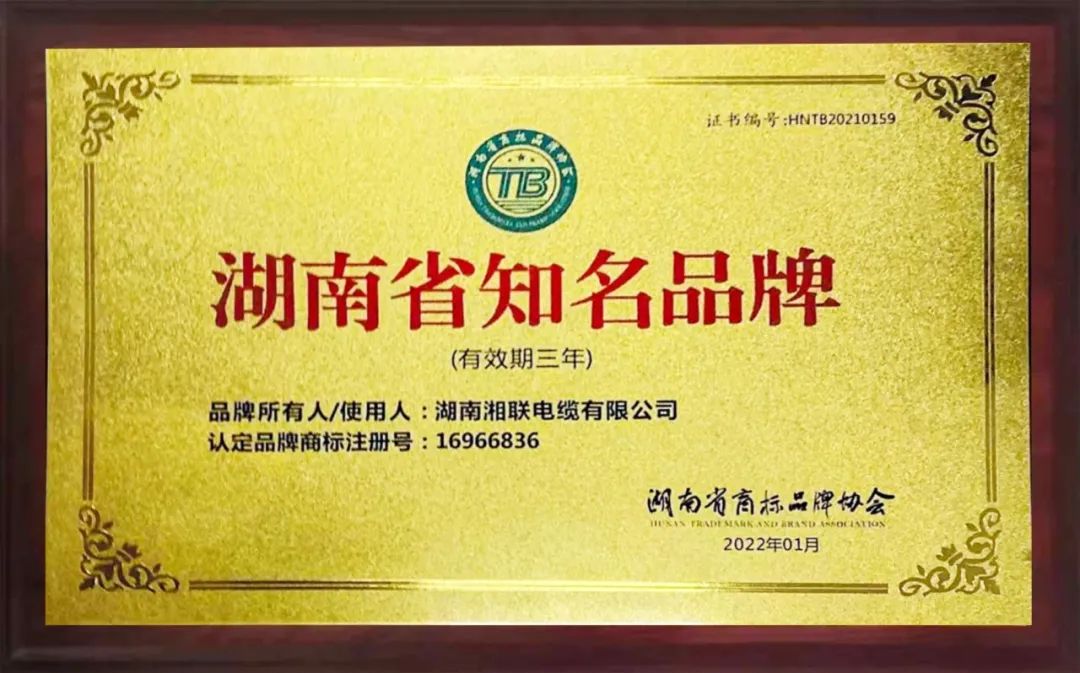 多年来,湘联电缆以科学的经营管理理念,组建实力雄厚的技术研发和企业管理团队,建立高标准质量管理体系,公司先后获得全国工业生产许可证、“三位一体”管理体系认证,产品通过 CCC认证,并获得企业标准“领跑者”等称号,成为湖南省知名品牌,深受客户信赖。