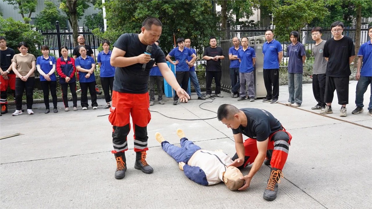 为了应对生产过程中可能发生的触电、漏电等意外伤害事故,本次消防演练还安排了触电应急演练,消防教员从截断电源、脱离电源、心肺复苏急救三个方面为大家培训了科学有效的应对方法,实用性强,真正提升了大家对触电等事故的应急能力