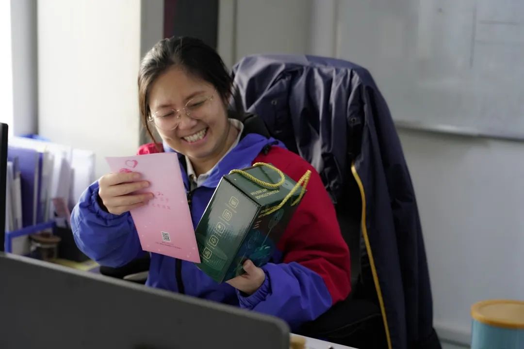 当一份份精心准备的礼品和一张张贺卡惊喜送到大家的工位时,妈妈们的喜悦之情溢于言表,欢声笑语充满湘联各个角落。