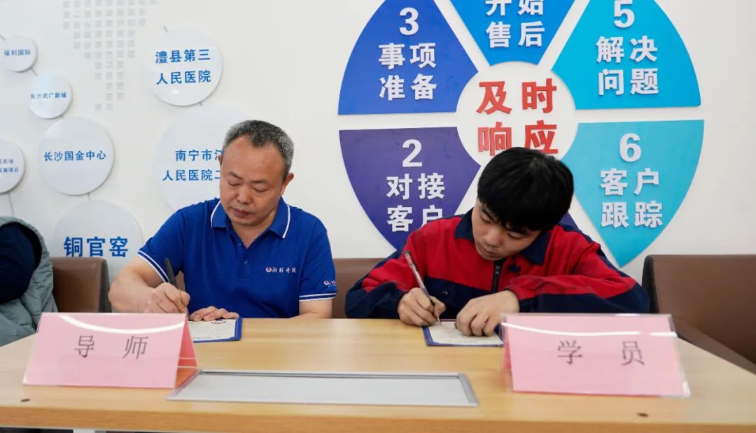 2024年“芯”火计划选取了工作责任心强、技术能力过硬、工作经验丰富的管理人员作为培训讲师,根据7位青年职工的岗位技能需求和讲师的专业领域,分岗位系统化、有针对性地对7位徒弟进行技术知识、技能实操以及工艺管理等方面的培训。在开班仪式上,讲师和学员通过签订师徒帖、发表宣言、献花等环节,隆重完成师徒结对仪式,形成紧密和谐的师徒关系。